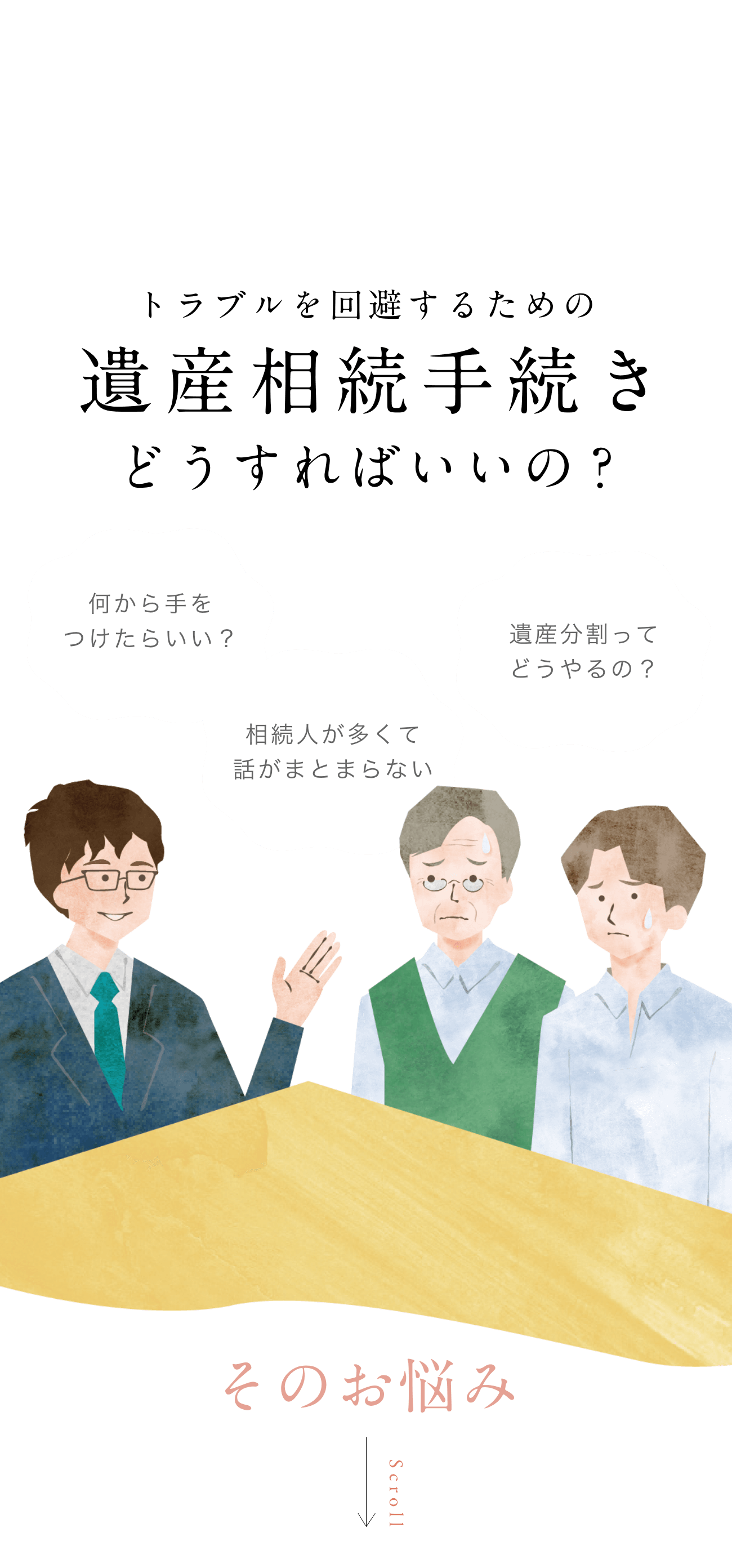 法律的な観点だけでなく、お客様ご本人やご家族の希望・価値観、手続の負担、税金・手数料、将来揉め事が起こるリスクなど、様々な角度から問題を検討し、お客様それぞれにとって満足ができる相続となるよう、ご提案をさせていただきます。